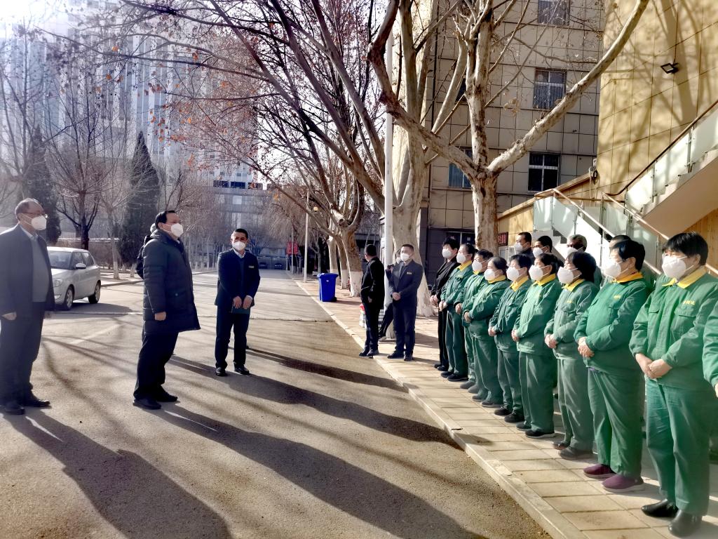 校领导先后到学生公寓、校园环卫和保洁点、校区门岗、学府家园物业管理中心、职业教育学院门岗等地,看望慰问坚守在工作岗位上的值班人员。每到一处,车滨与工作人员亲切交谈,详细了解假期期间学校各项服务和保障情况,询问值班人员的工作和生活安排,对大家一年来尤其是疫情防控期间的努力工作和辛勤付出表示诚挚的敬意和衷心的感谢,并叮嘱大家要注意防寒保暖、做好防护。同时希望他们劳逸结合,做好轮班值守,落实好各项安全措施,确保校园安全稳定。
