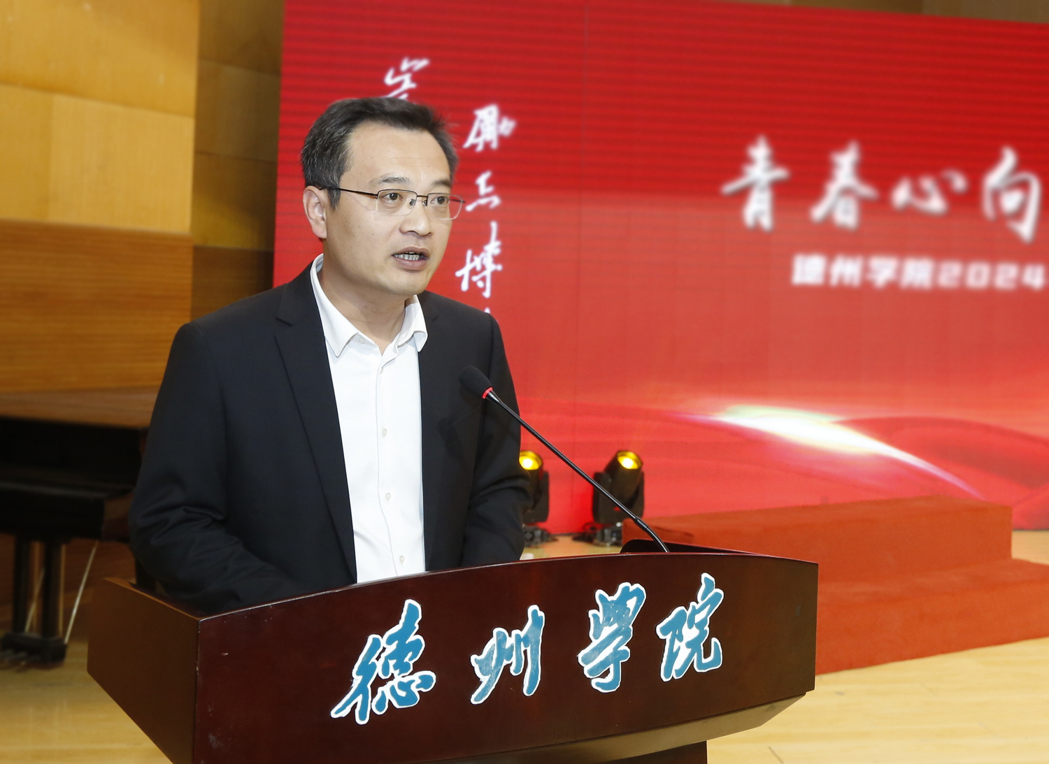 与会人员还共同观看了原创情景朗诵《我们的青春》。学校相关职能部门副处级以上干部,各学院党委书记、副书记、团委书记及全体辅导员,各学院学生会、学生社团负责人及学生代表共计400余人参加大会。