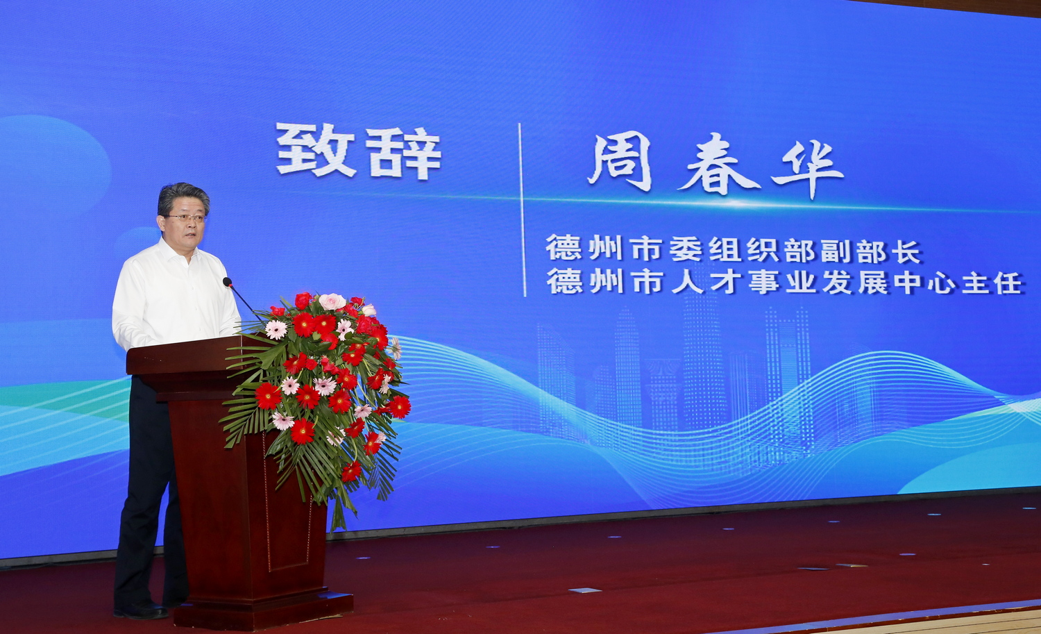 周春华致辞,他代表德州市委组织部、市委人才工作领导小组办公室,对校地双方合作签约表示热烈祝贺。他指出,人才是第一资源,创新是第一动力。市委、市政府牢固确立人才引领发展的战略地位,深入推进“四链”融合发展,全力支持校地校企合作,人才引领驱动高质量发展效能不断提升。此次球王会官网与武城合作签约,联合推进高端人才引育、科技成果转化、平台载体建设,既是武城县发展进程中的一次重要机遇,也是德州市校地合作的又一成功范例,必将对全市“四链”融合发展起到重要示范带动作用。