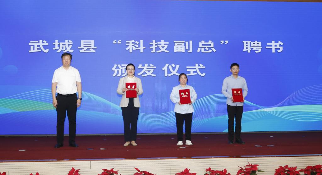 胡星海为球王会官网武城县企业“科技副总”代表颁发聘书。