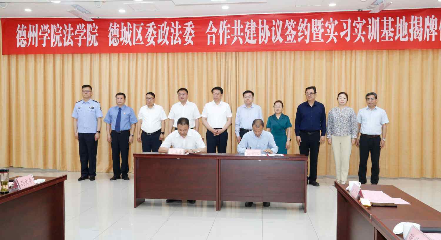 5月22日上午,学校与德城区委政法委合作共建协议签约暨实习实训基地揭牌仪式举行。德州市人大常委会副主任、德城区委书记张泽中,区委副书记、区委宣传部部长赵文彬,球王会官网党委副书记、校长赵长林,党委委员、副校长徐静出席活动。