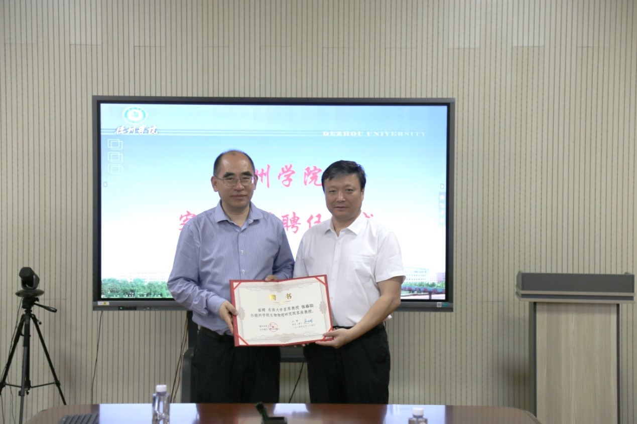 聘任仪式上,李甲亮对张春阳的到来表示欢迎,他介绍了学校的办学历史、学科建设及球王会官网山东省生物物理重点实验室建设等情况。他表示学校高度重视学科建设及省重点实验室建设,希望张教授对实验室建设及相关学科发展提出宝贵意见和建议。