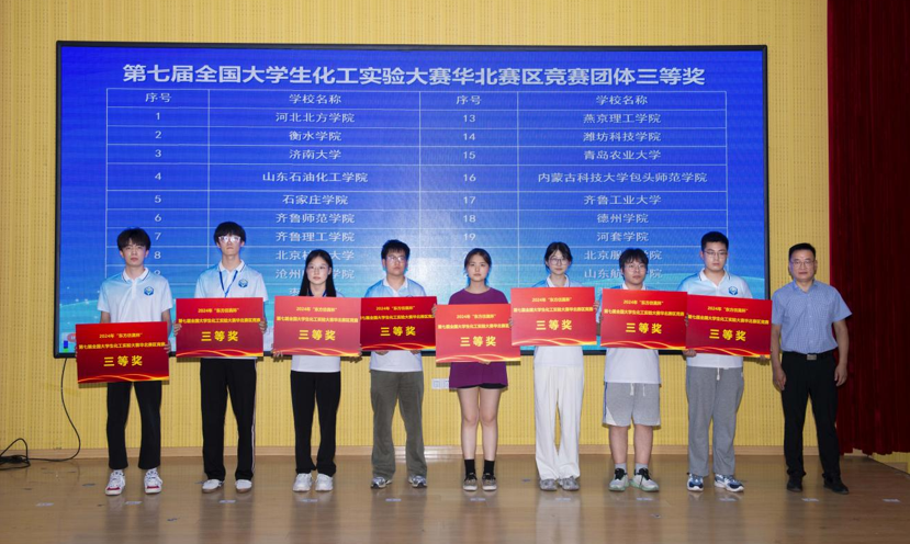 7月12日至14日,由中国化工教育协会主办、青岛科技大学承办的2024年“东方仿真杯”第七届全国大学生化工实验大赛华北赛区竞赛举行,来自国内57所高校的300余名师生参加。球王会官网化学与化工学院2022级化学工程与工艺专业李梦达、许义坤和吴肖肖3名学生参加了比赛并荣获团体三等奖。