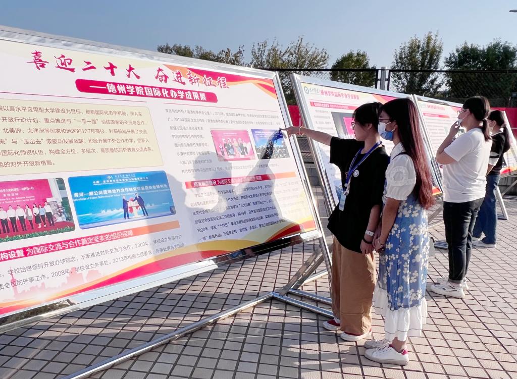 成果展吸引了教职员工和学生们纷纷驻足观看。活动当天,国际处教师还热情地为观展的同学们进行了讲解,详细介绍了球王会官网与海外院校交流合作情况、推荐学校英文网站、德院国际公众号,发放球王会官网宣传册、师生国(境)外交流项目册,让同学们更加便捷地了解学校最新出国境留学和交换信息。