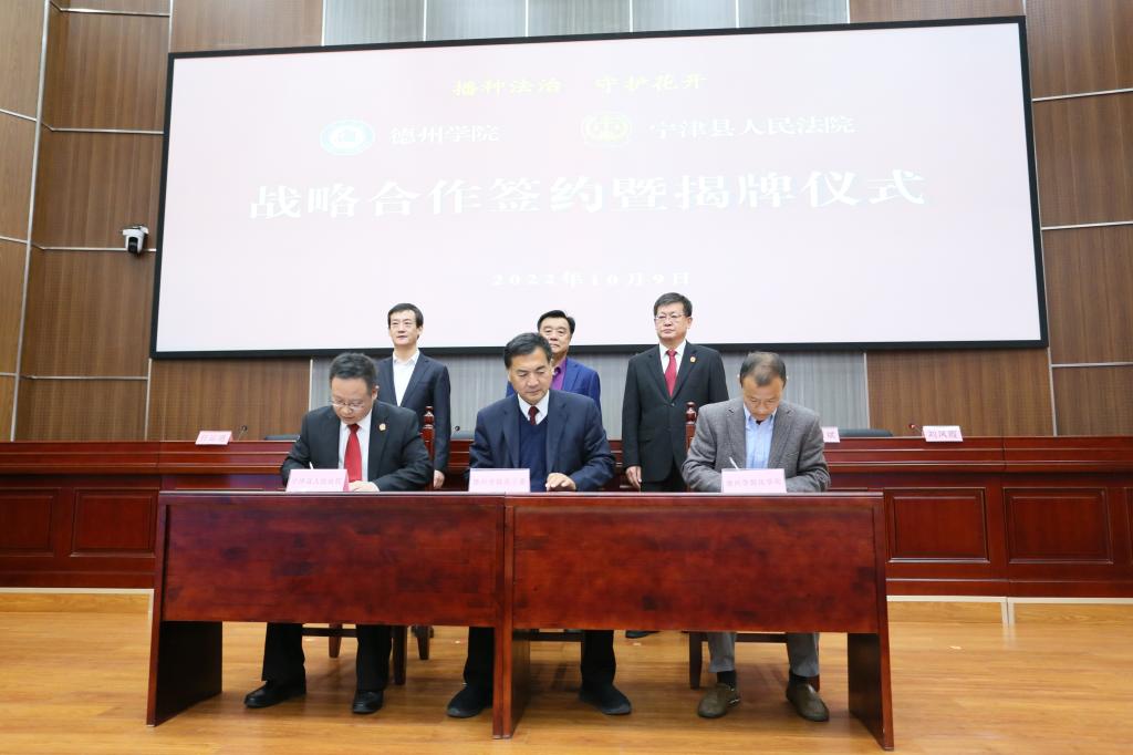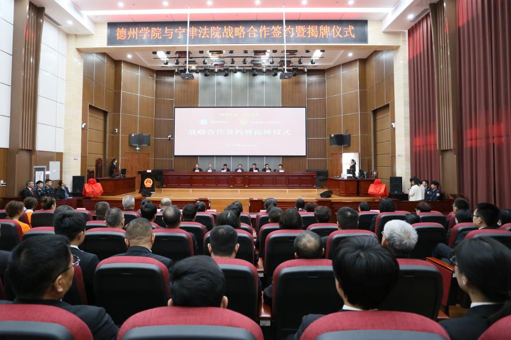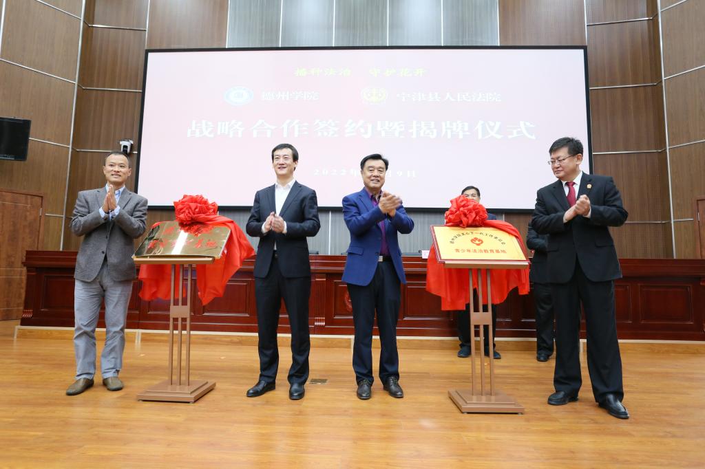 仪式上,“球王会官网实习实训基地”“球王会官网青少年法治教育基地”基地揭牌,双方共同签订共建战略合作协议书。学校向宁津县人民法院赠送《球王会官网史》《德州地域文化研究丛书(精选版)》《我国专门法院(庭)设置的基础研究与前瞻》《黄河三角洲生态经济法治建设研究》等校本著作。