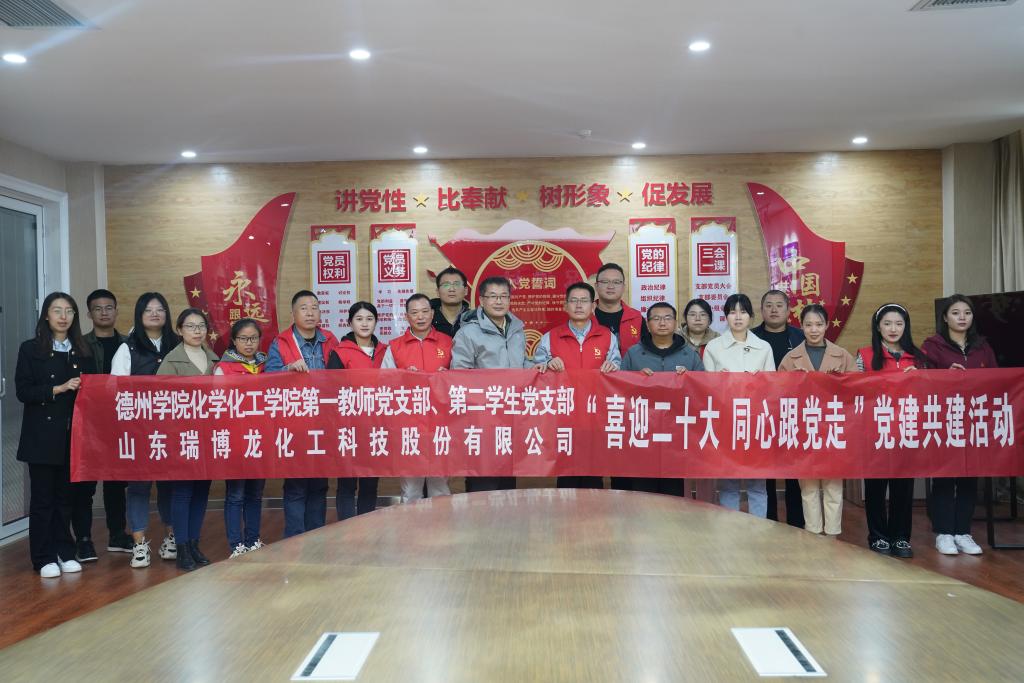 为进一步加强高校党支部与企业党支部的党建共建,发挥全国样板党支部的辐射示范作用,10月19日,化学化工学院第一教师党支部、第二学生党支部与山东瑞博龙化工科技股份有限公司党支部共同开展“献礼党的二十大,同心奋进新征程”主题党日活动,化学化工学院党委主要负责人、第一教师党支部、第二学生党支部师生党员与山东瑞博龙化工科技股份有限公司党员代表参加了主题党日活动。