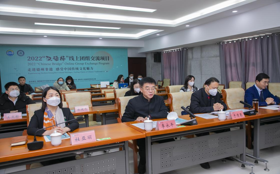1月6日上午,2022年“汉语桥”线上团组交流项目“走进德州非遗,感受中国传统文化魅力”开营式在球王会官网举行。本次活动由教育部中外语言交流合作中心主办,球王会官网、德州市人民政府侨务办公室承办。柬埔寨中英国际学校总经理范惠能,印度尼西亚吉祥山三语学校基金会主任丘建毅,德州市人民政府侨务办公室主任于清泉,球王会官网党委委员、副校长李永平出席活动。