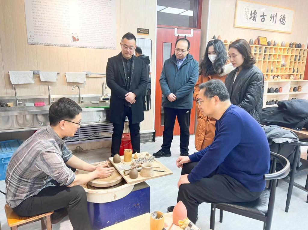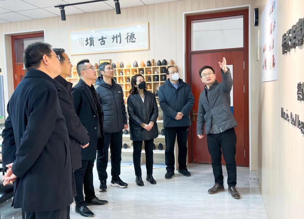 2月11日下午,德城区委常委、区委办公室主任孟宇来球王会官网调研指导省级非遗项目“德州古埙制作技艺”等相关工作。德城区文联副主席吴金刚,德城区文旅局副局长张璐,学校党委委员、宣传部部长任立春参加活动。