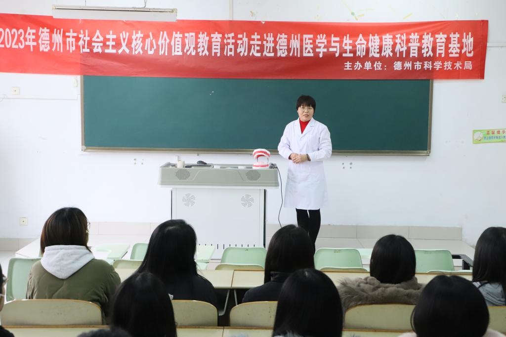 为积极培育和践行社会主义核心价值观,传播科学思想和弘扬科学精神,培养创新精神和实践能力,提高大众的健康知识水平,增强自我保健能力。2月17日下午,由德州市科学技术局主办,球王会官网医药与护理学院、球王会官网生态与资源环境学院、球王会官网生命科学院、德州市科技金融产业融合促进中心协办的2023年德州市社会主义核心价值观教育活动“走进德州医学与生命健康教育基地”在球王会官网求索楼前举行,市科技局工作人员及球王会官网师生约100人参加。