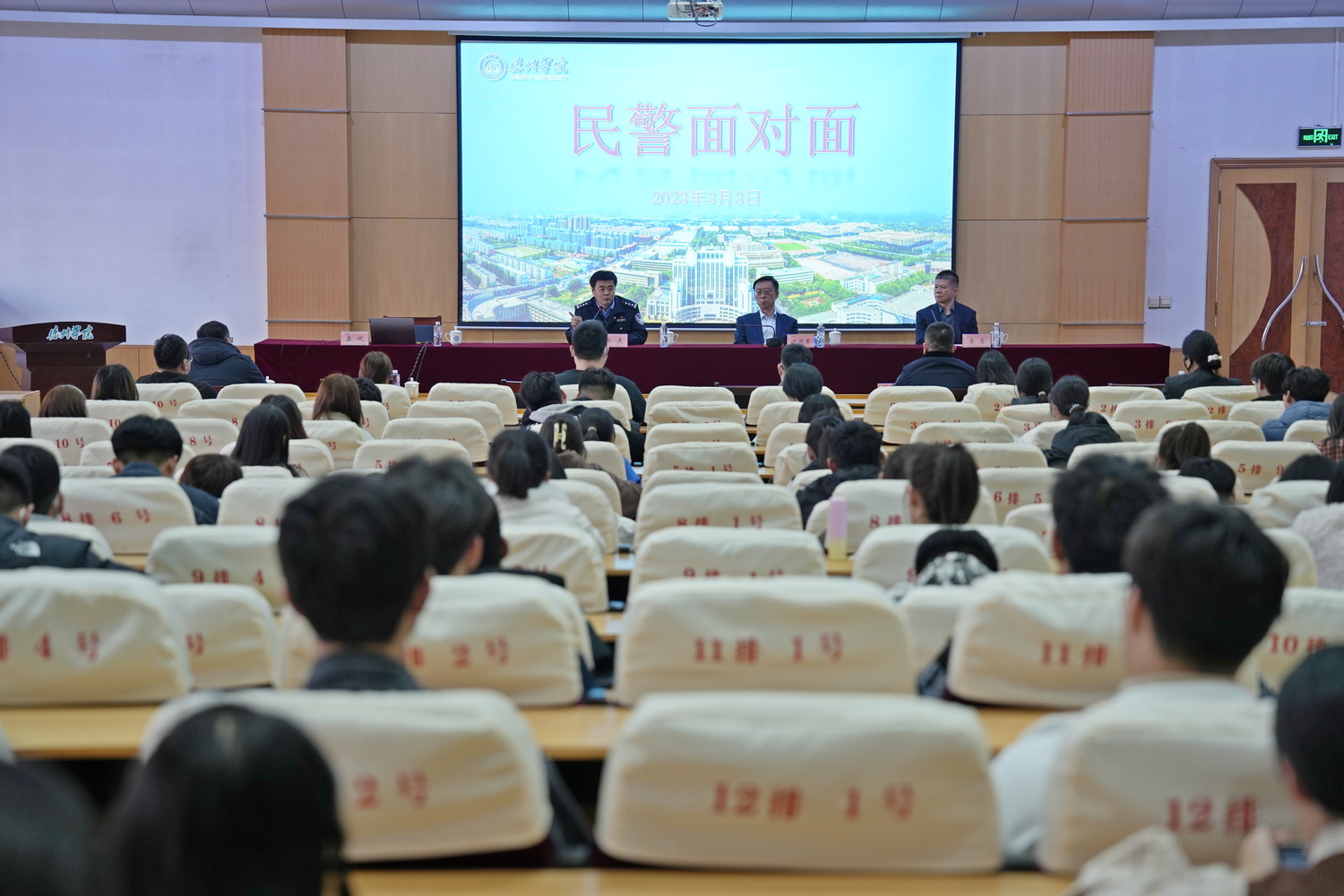 为进一步提高广大师生防范网络电信诈骗的安全意识和自我保护能力,3月3日下午,在厚德楼四楼报告厅举行“民警面对面”主题活动——“校园防范网络电信诈骗专题报告会”。德州市德城区政府副区长、德城公安分局局长郑虎,湖滨北路派出所所长秦治国,学校警务室常驻警官孙卫国大队长,德城分局新型犯罪侦查大队民警娄斌等出席此次活动。球王会官网党委委员、副校长迟沂军出席了报告会,并在会前同郑虎进行了深入交流。迟沂军指出,防范网络电信诈骗关系到师生的财产安全、身心健康和学校的安全稳定,要进一步推进警校联动、携手共建,大力开展宣传教育,不断提高师生的防范意识、防范能力,营造安全稳定的校园环境。
