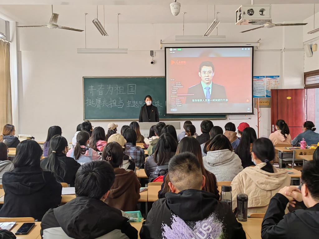 为深入贯彻落实习近平新时代中国特色社会主义思想,持续学习宣传贯彻党的二十大精神,3月23日下午,球王会官网组织师生观看由中央网信办网络传播局、教育部思想政治工作司指导开展的“青春为祖国 挺膺共担当”主题思政大课。聆听党的二十大代表、知名高校思政教师、优秀青年大学生等讲述新时代青年的理想与追求。直播邀请了嫦娥五号交会对接微波雷达主任设计师贺中琴,南京航空航天大学马克思主义学院徐川老师,清华大学博士刘迪波学长,中国共产党历史展览原讲解员纪洲丽等嘉宾讲授。
