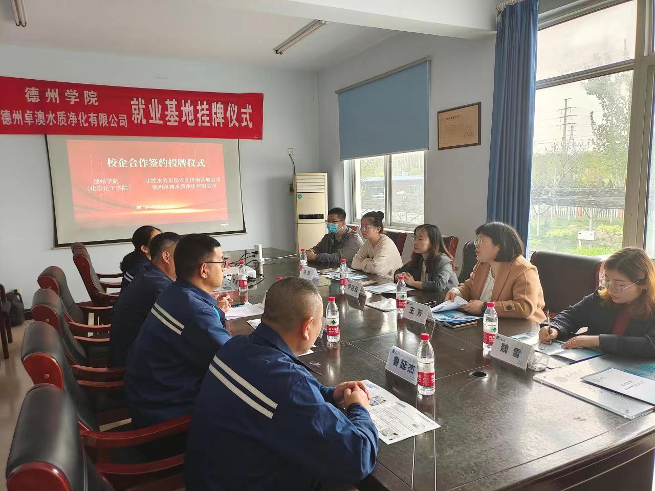 4月14日,化学化工学院深入开展“访企拓岗”促就业系列活动,与德州卓澳水质净化有限公司举办就业基地挂牌仪式。化学化工学院党委书记、系主任、辅导员,德州卓澳水质净化有限公司总经理等相关负责人参加仪式。仪式上,公司总经理详细介绍了公司发展历程,工业废水、生活废水的处理流程及公司发展战略,希望能够加强校企合作,织就“共生共赢”网。化学化工学院党委书记就学院的师资力量、人才培养模式、学生就业工作、科研情况做了详细介绍。双方一致认为,要将学校基础研究的优势与企业科技创新活力相结合,在高层次人才共享、联合研发平台建设以及学生就业等方面开展深度合作,共同服务地方经济社会发展。随后,双方签订《球王会官网就业基地共建协议书》《实习实训基地协议书》,并进行授牌。下一步,校企双方将深入探索合作新领域、新途径,促进水资源循环利用,发展水生态环境保护事业,为德州市经济社会的和谐发展贡献力量。