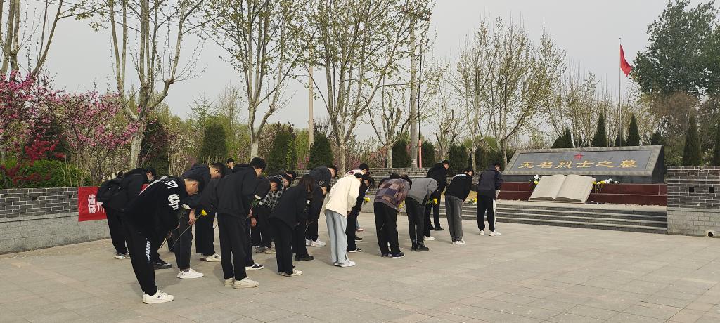 在革命烈士纪念碑前,全体师生整齐列队,神情肃然,怀着无比崇敬的心情向长眠于此的革命烈士们鞠躬默哀,表达缅怀之情。随后,大家来到无名烈士墓碑前,向无名烈士敬献鲜花,清扫烈士墓碑,以这种方式寄托我们的哀思。
