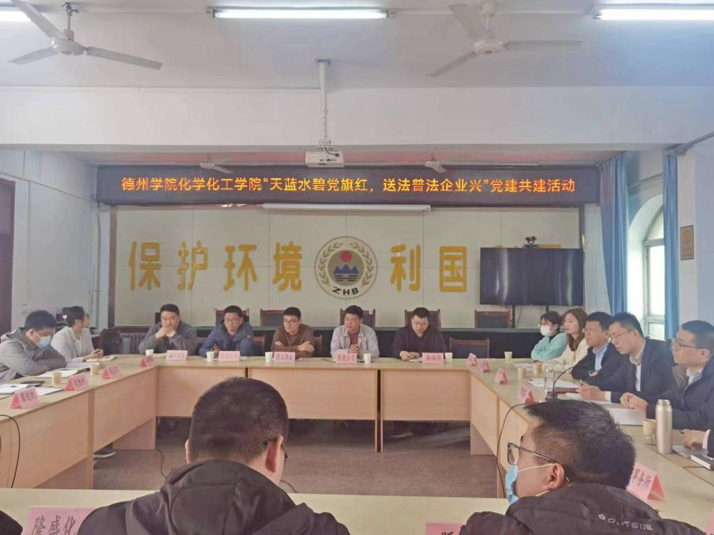 4月12日,化学化工学院环境工程系第四教师党支部及学生党支部师生与德州市生态环境局、市中级人民法院、市人民检察院联合开展“企业环境法律服务日”平原专场活动,通过活动进一步宣传环保法律法规,促进企业环保主体责任的提升。晋德有限公司、山东药石药业有限公司等9家企业参加本次活动。