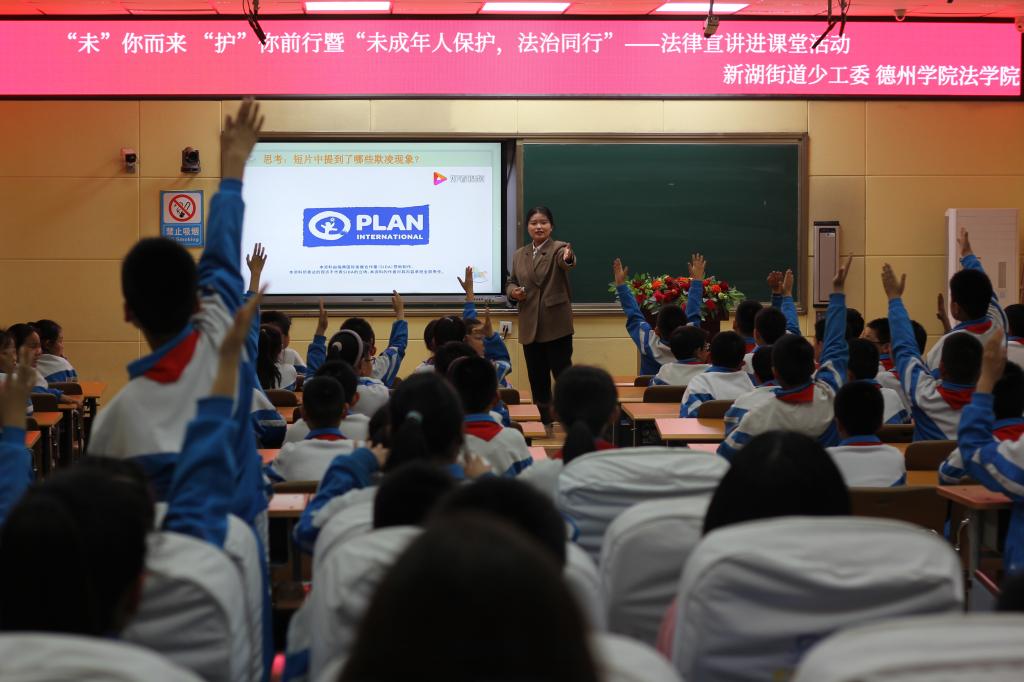 4月26日,法学院联合新湖街道少工委、新湖北路小学开展未成年人保护法法律宣讲进校园活动。法学院教师田莹莹博士以“我们该如何保护自己?”为题,为新湖北路小学孩子们普及了《中华人民共和国未成年人保护法》《预防未成年人犯罪》等关于未成年人保护相关的法律法规,活动现场同学们参与热情高涨,踊跃发言,积极互动,达到了良好的法治宣传教育目的。
