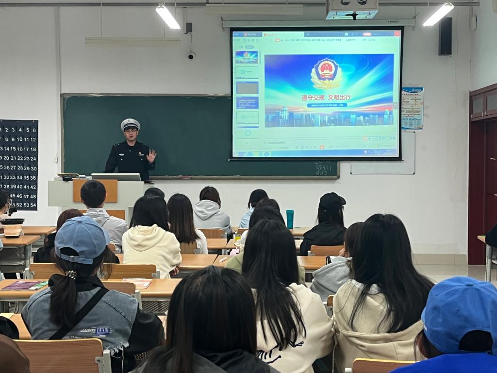 为进一步提高学生交通安全意识和文明素养,普及交通安全知识,创造和谐有序的交通环境,减少交通意外事故发生。5月5日上午,纺织服装学院邀请德州交警大队民警在明理楼0142教室开展“平安校园,安全你我”道路交通安全宣传活动,学院团委副书记、学生代表约70余人参加活动。