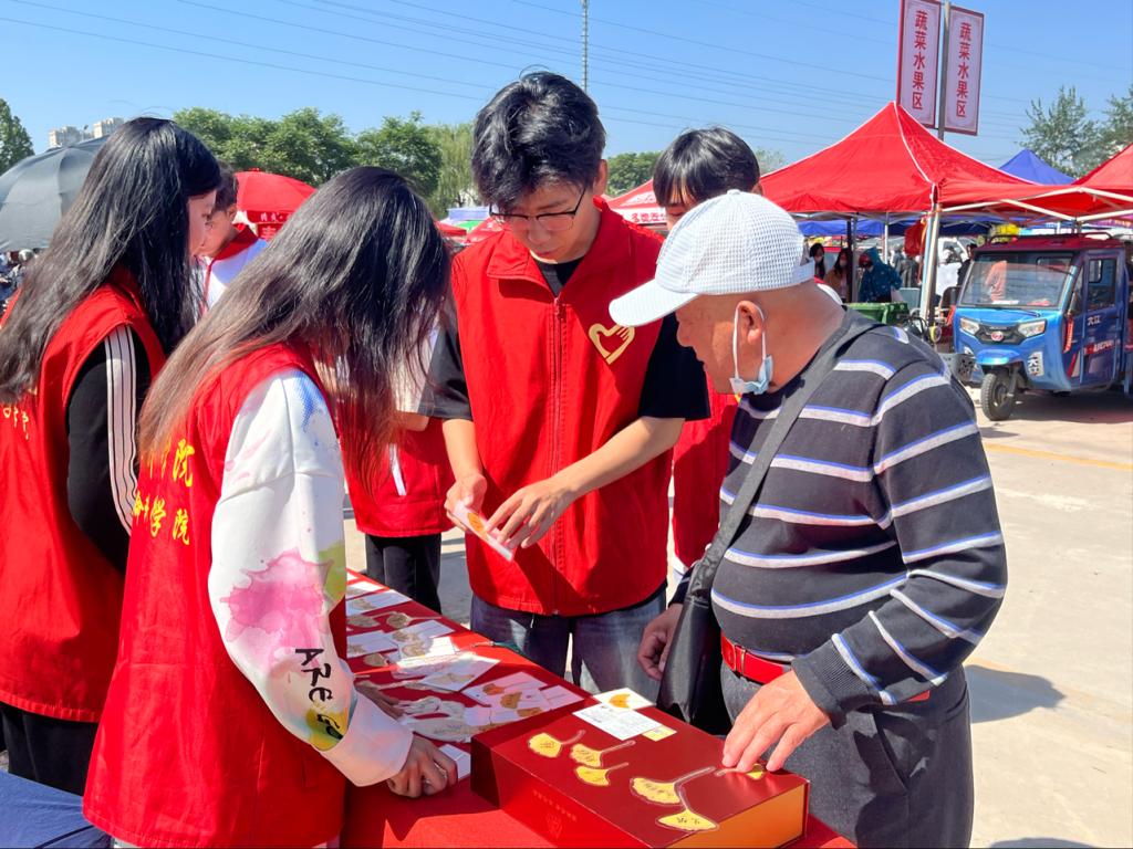 5月13日,为广泛宣传普及食品安全健康知识,进一步弘扬志愿服务精神,生命科学学院联合宋官屯街道在艾家坊大集举办“特色创业赶大集,文明实践展风采”活动。