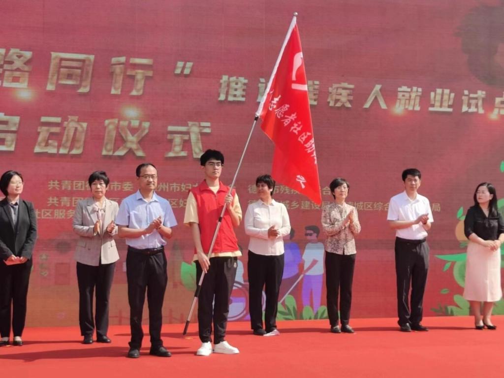5月16日上午,由共青团德州市委、德州市精神文明建设委员会、德州市残联、德州市总工会、德州市妇联联合举办的德州市青年志愿者社区助残服务队授旗仪式在德城区嘉诚景园举行。球王会官网青年志愿者联合会服务队参加授旗仪式,并接受青年社区助残服务队队旗。