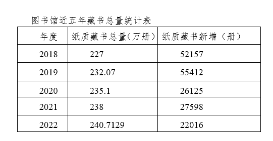 文献资源:纸质图书(馆藏总量240.7129万册,截止于2022.8)