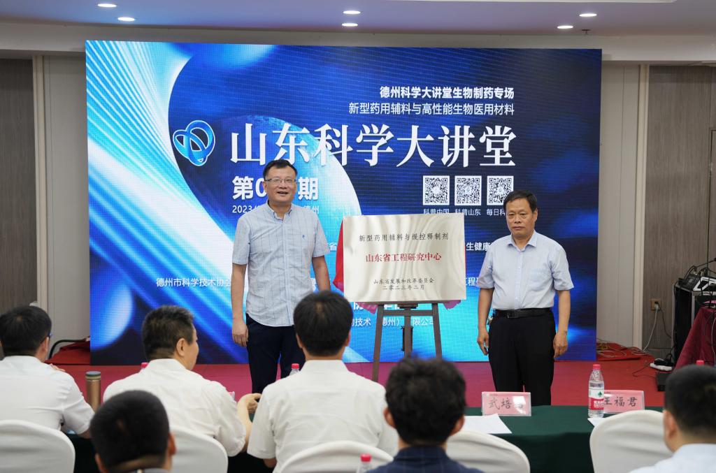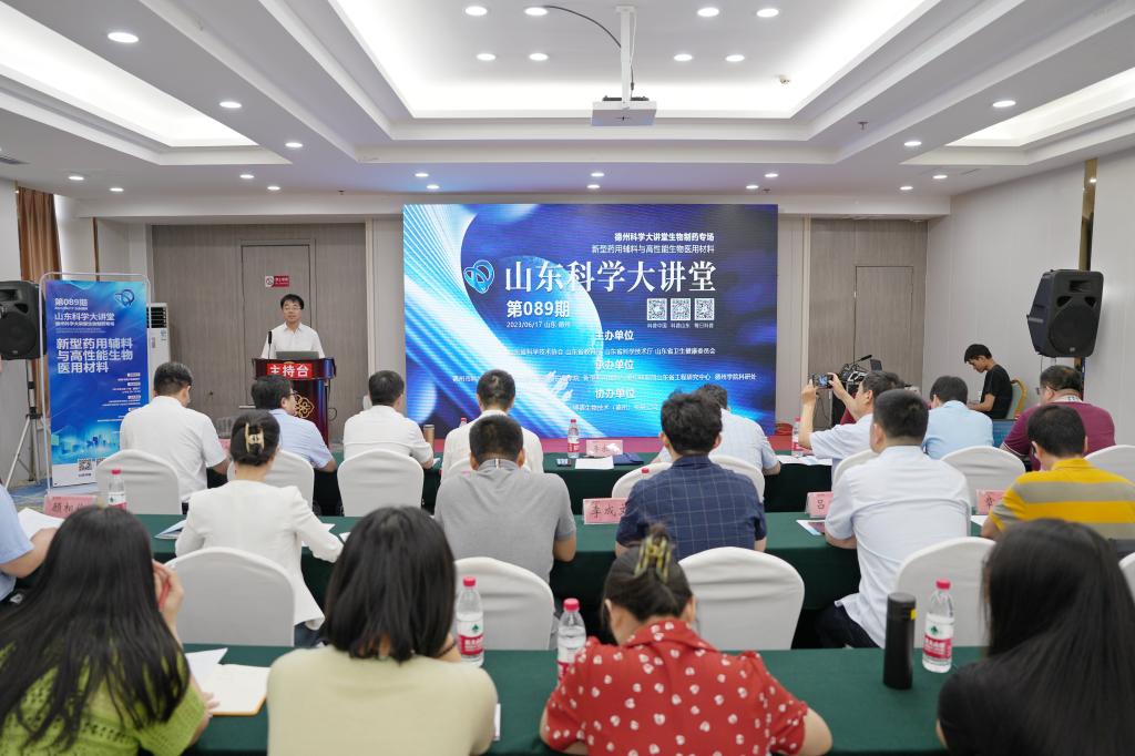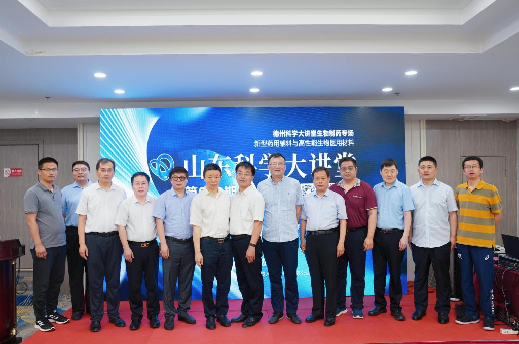 6月17日,2023年第89期山东科学大讲堂、德州科学大讲堂生物制药专场新型药用辅料与高性能生物医用材料论坛在柳湖书院3号报告厅顺利召开。球王会官网副校长李永平、德州市科协党组书记主席苗晓钢、德州市发改委副主任王福君、东华大学国家杰青武培怡教授、天津大学国家杰青刘文广教授、济南大学泰山学者郑庚修教授、苏州大学国家杰青严锋教授、山东理工大学杨乃涛教授、华东理工大学章弘扬教授、山东聊城阿华制药股份有限公司吕宪峰副总经理、德药制药有限公司李成文副总经理出席了论坛。