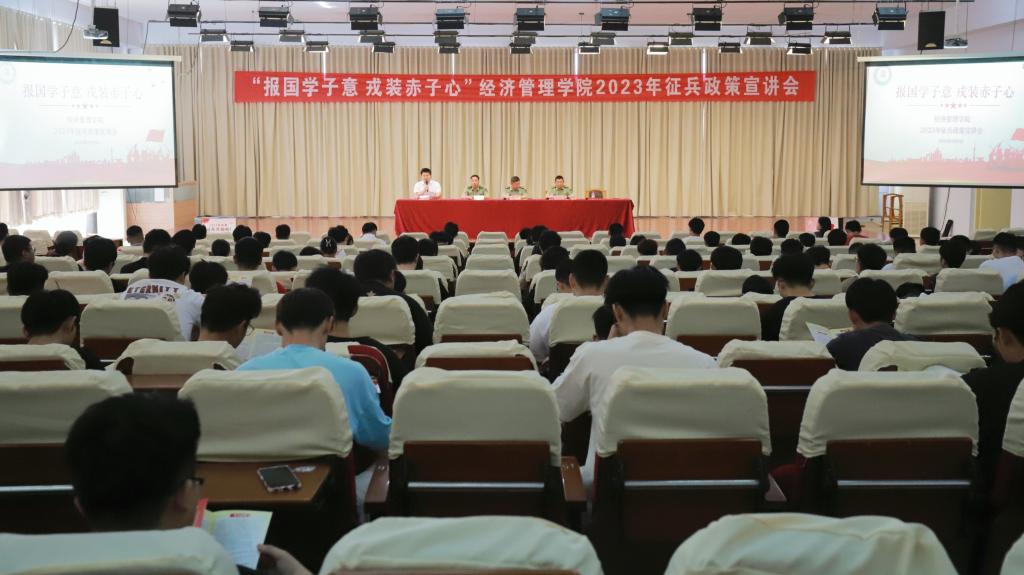 莘莘学子携笔从戎,参军报国建功立业。各学院加强对毕业生应征入伍工作的宣传力度,鼓励毕业生到部队锻炼成长成才,报效祖国。经济管理学院举办“报国学子意 戎装赤子心”征兵政策宣讲会,化学化工学院联合球王会官网国防教育中心举办“追梦新时代,青春献国防”2023征兵入伍动员大会,学生更加清晰地了解征兵工作的政策规定,激发了广大青年参军入伍的热情和积极性。