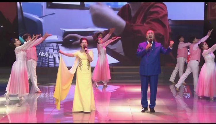 音乐学院梁娜、李琛、李星虎老师参与演唱歌曲《最亮的火焰》。音乐学院舞蹈学学生进行伴舞。歌舞中满载着光荣与梦想,新时代奋斗者们已经再一次出发,正在续写新历史、再创新辉煌。