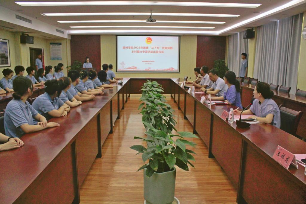 仪式上,校团委负责人介绍了本次暑期“三下乡”社会实践乡村振兴专项活动的基本情况,并希望同学们在实践中受教育,坚定理想信念;在实践中长才干,增强知识本领;在实践中作贡献,在全面推进乡村振兴、实现农业农村现代化进程中展现德院学子的青春担当。乡村振兴研究院负责人表示,此次暑期“三下乡”乡村振兴专项社会实践活动,是德院学子牢记习近平总书记嘱托,积极赋能乡村振兴,助推德州农业现代化的重要举措。乡村振兴研究院一定配合好此次专项社会实践活动,并希望同学们珍惜锻炼机会,坚定理想信念,厚植“三农”情怀,将课堂学习与乡村实践紧密结合,以实际行动助力乡村振兴。出征仪式上,全体志愿者进行了集体宣誓,文学与新闻传播学院的王文萱同学作为志愿者代表进行发言。
