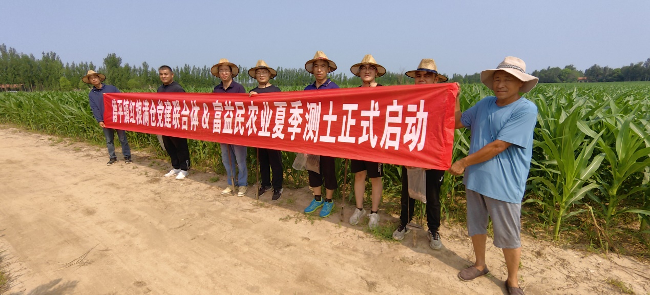 为提高农民科学施肥水平,促进粮食增产、农民增收,更好地助力乡村振兴,同时也是受全国人大代表、全国“十佳农民”和临邑县富民小麦种植专业合作社理事长魏德东的邀请,7月20日,生态与资源环境学院派出由4名专业博士组成的采样队并携带土壤样品采集工具,赴临邑县德平镇富民家庭农场参与“德平镇红粮满仓党建联合体&富益民农业夏季测土正式启动”活动。