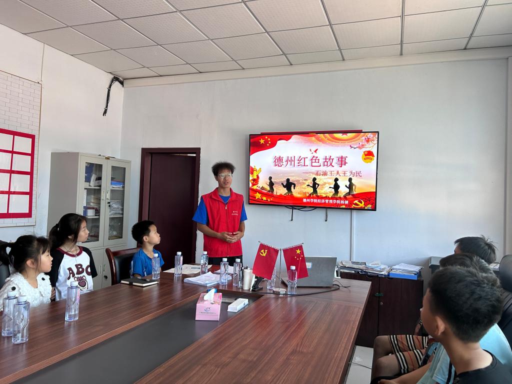 携手进社区,爱心支教行。7月11日上午,支教团成员赴山东省武城县黄花园社区针对社区一些留守儿童开展支教活动。在活动现场,团队成员们向孩子们做了自我介绍,随后,让孩子们积极自我介绍,相互认识,增进感情。接下来的几天里,团队成员开设了音乐、舞蹈、绘画、手工、朗诵等兴趣课程。学习之余,支教团为孩子们分享红色故事,讲述红色文化,与孩子们共同开展了红色手势舞、红色朗诵等活动。结合专业特色,开设了“我是小小银行家”系列课程,内容包括“如何支配自己的金钱”“防诈骗知识”宣讲等活动,丰富了孩子们的暑期生活,增长了知识带来了欢乐。当问起孩子们在课堂上的感受时,他们说:“开心,知道了很多新鲜的事情,也学到了很多”,别开生面的教学方式、丰富的教学内容让参加活动的孩子们感受到了满满的温暖与鼓励。