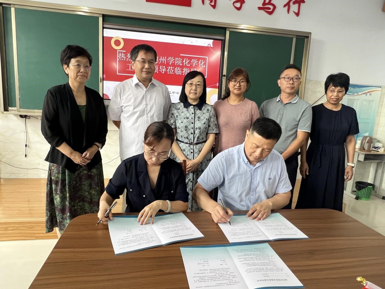 学院负责人分别与德州市第十二中学、武城县第六中学负责人进行座谈,双方分别介绍了各自的办学特色、师资力量、学科建设水平和取得的办学成绩,表达了加强两校合作,共同推进两校人才培养及学科教学科研建设的愿望,深入探讨了开展合作的途径和方式,在实习实践模式、教学科研等方面进行深入交流。化学化工学院与双方学校分别签订了《球王会官网就业基地共建协议书》,并举行就业基地挂牌仪式。