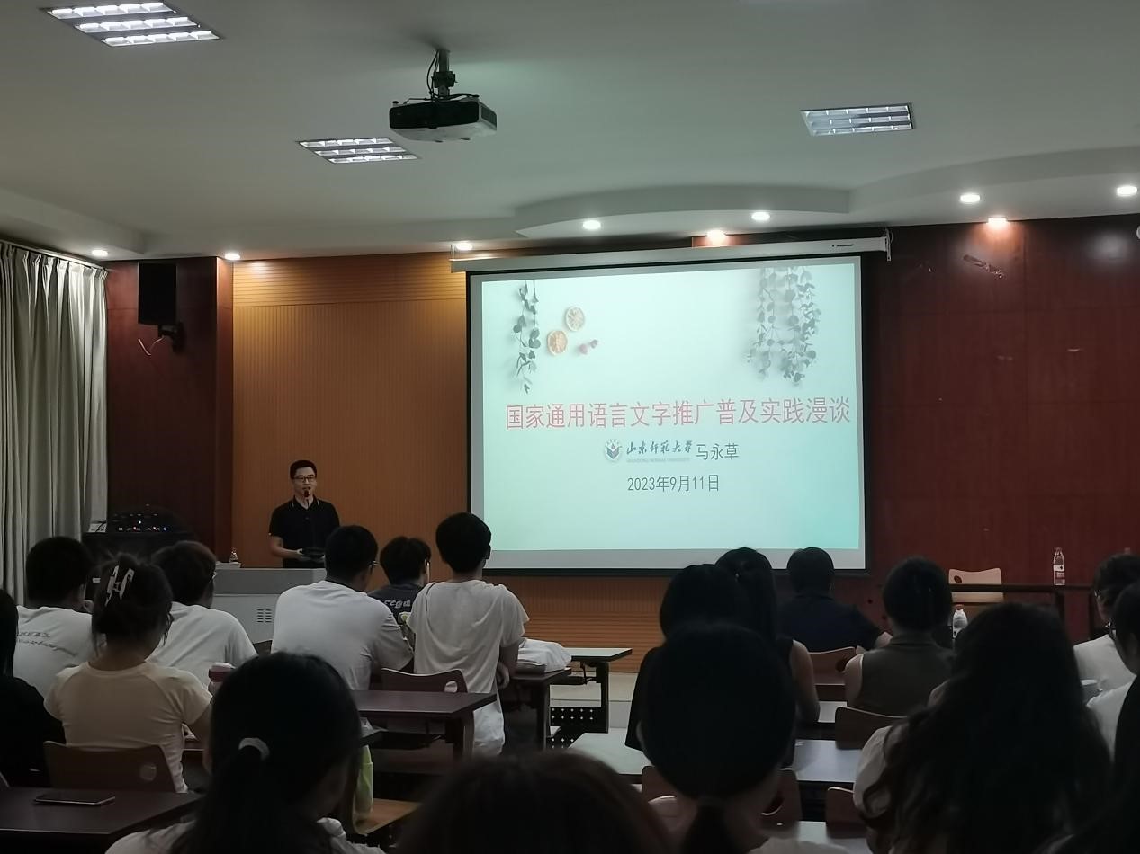 为深入贯彻党的二十大精神,加大国家通用语言文字推广力度,传承弘扬中华优秀语言文化,9月11日,球王会官网特邀山东师范大学国家语言文字推广基地骨干教师马永草在博文楼328开展“国家通用语言文字推广普及实践漫谈”专题讲座。