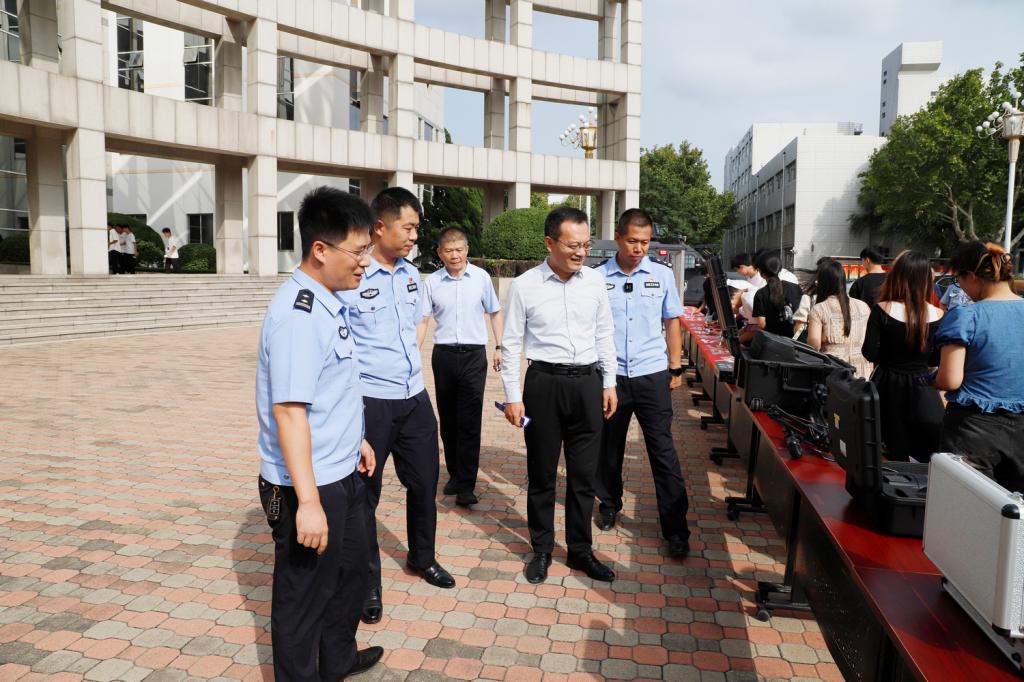 在厚德楼广场,蒋涛涛、公安局领导同志与师生共同参加了反恐防暴知识宣传和器材展示,并进行反恐防暴宣传倡议签名活动。