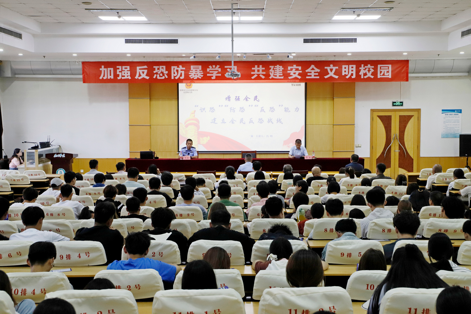 随后,反恐大队大队长冯明在厚德楼四楼报告厅做了题为《加强反恐防暴学习,共建安全文明校园》专题报告,分析了恐怖主义组织的组织形式和特点,以及防范各种恐怖主义活动的基础知识。