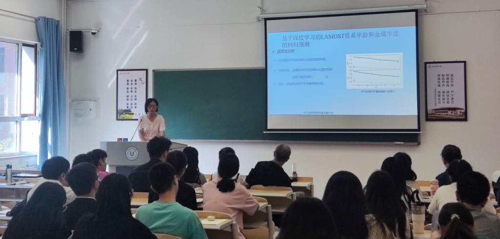 讲座主要介绍了深度学习的前沿研究热点及其在天文大数据领域的应用,重点介绍了基于深度学习的LAMOST星系年龄和金属丰度预测和基于深度学习的多个星族参数估计,最后总结并展望了未来该领域的研究方向和将面临的挑战。会后,太原科技大学的师生与王老师就神经网络模型优化、大数据处理方面的研究进行了热烈的讨论。
