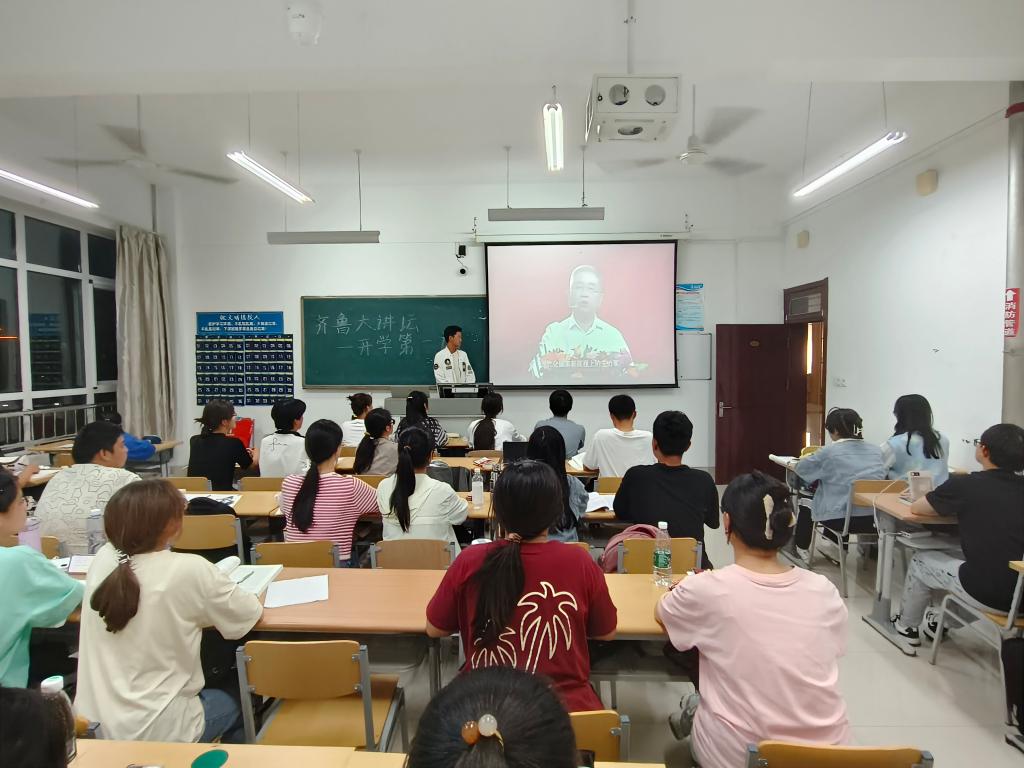 为深入学习贯彻习近平新时代中国特色社会主义思想,全面贯彻党的二十大精神,引导青年学生继续深化对现代化建设规律的认识,坚持自信自立、守正创新,球王会官网积极响应省委教育工委号召,于9月25日晚组织全校学生观看《齐鲁大讲坛——开学第 1 讲》。