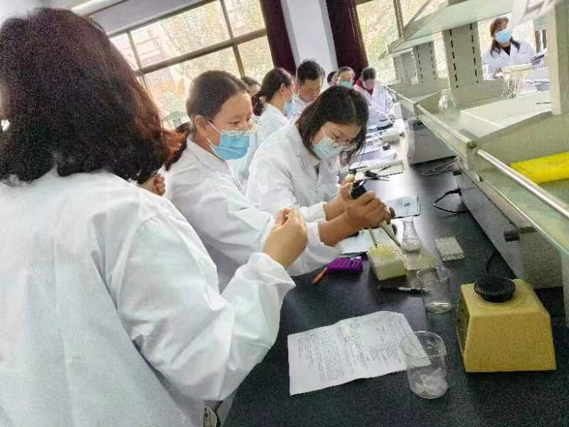 培训活动参加人员来自德州市重点高中生物学市级教研骨干,生科院生物学科专业学生参与了此次培训,并与高中生物学教师开展了实验教学技能提升研讨活动。生科院专业教师李娟和周海霞担任此次活动的主讲,她们围绕高中生物必修3《生物技术与工程》模块中的重点实验及知识拓展,分别就分子生物学和微生物学相关核心实验技术开展培训。全体参加培训老师积极参与培训实验内容,并结合当前实验教学实际中发现的问题,与生物科学专业师范生充分研讨,提出了自己的思考和建议,经过各方努力,圆满完成了本次的研讨活动。