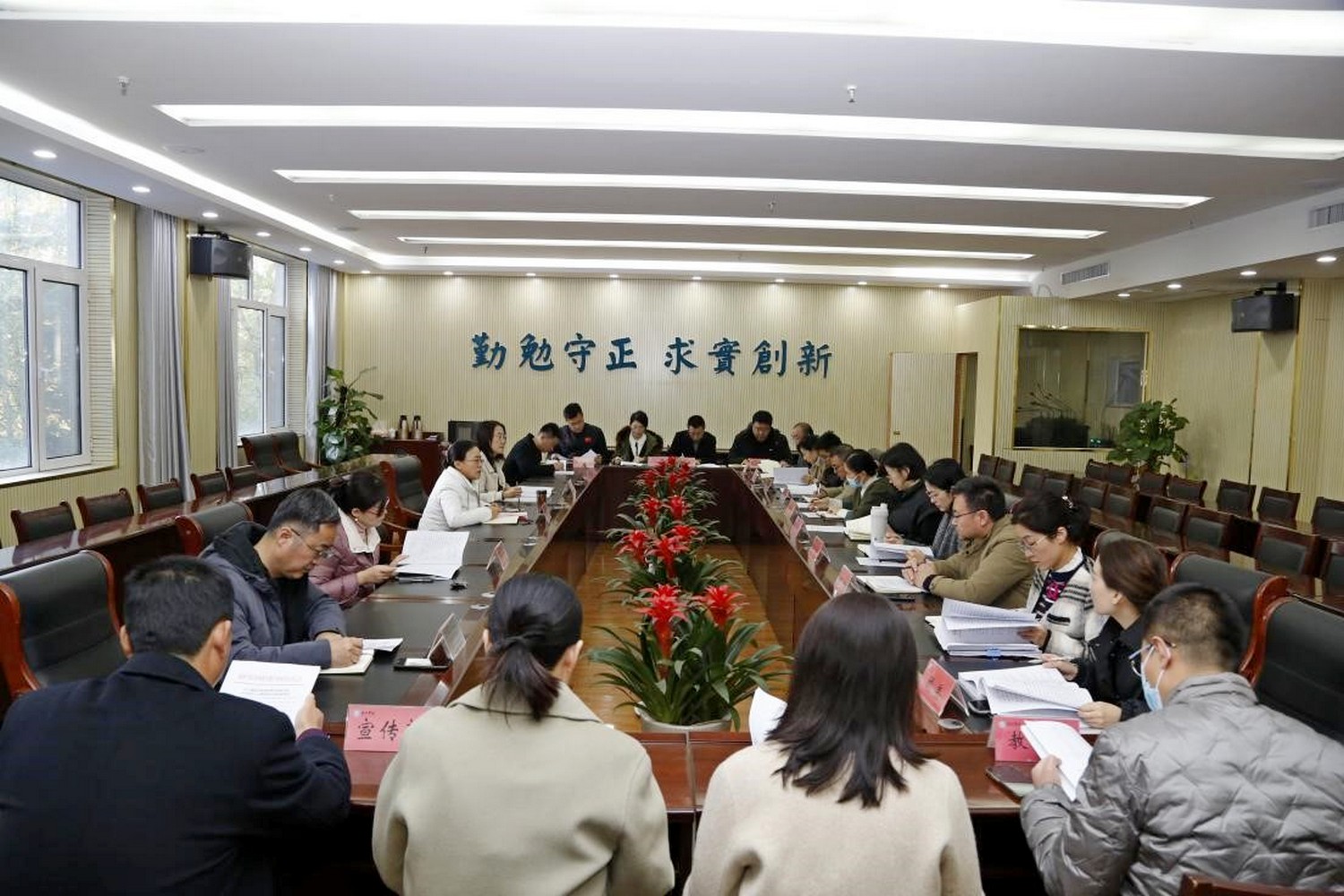 党委(校长)办公室、纪委、组织部、宣传部、学生工作部、人事处、教务处、团委、发展规划处、就业指导处、国际交流合作处、财务处、资产管理处、后勤管理处、保卫处、图书馆、合作发展处、教学质量督导与评估处、实验管理中心、网络与教育技术中心、创新创业学院、大学生体质健康指导中心审核评估各责任部门负责人参加会议。