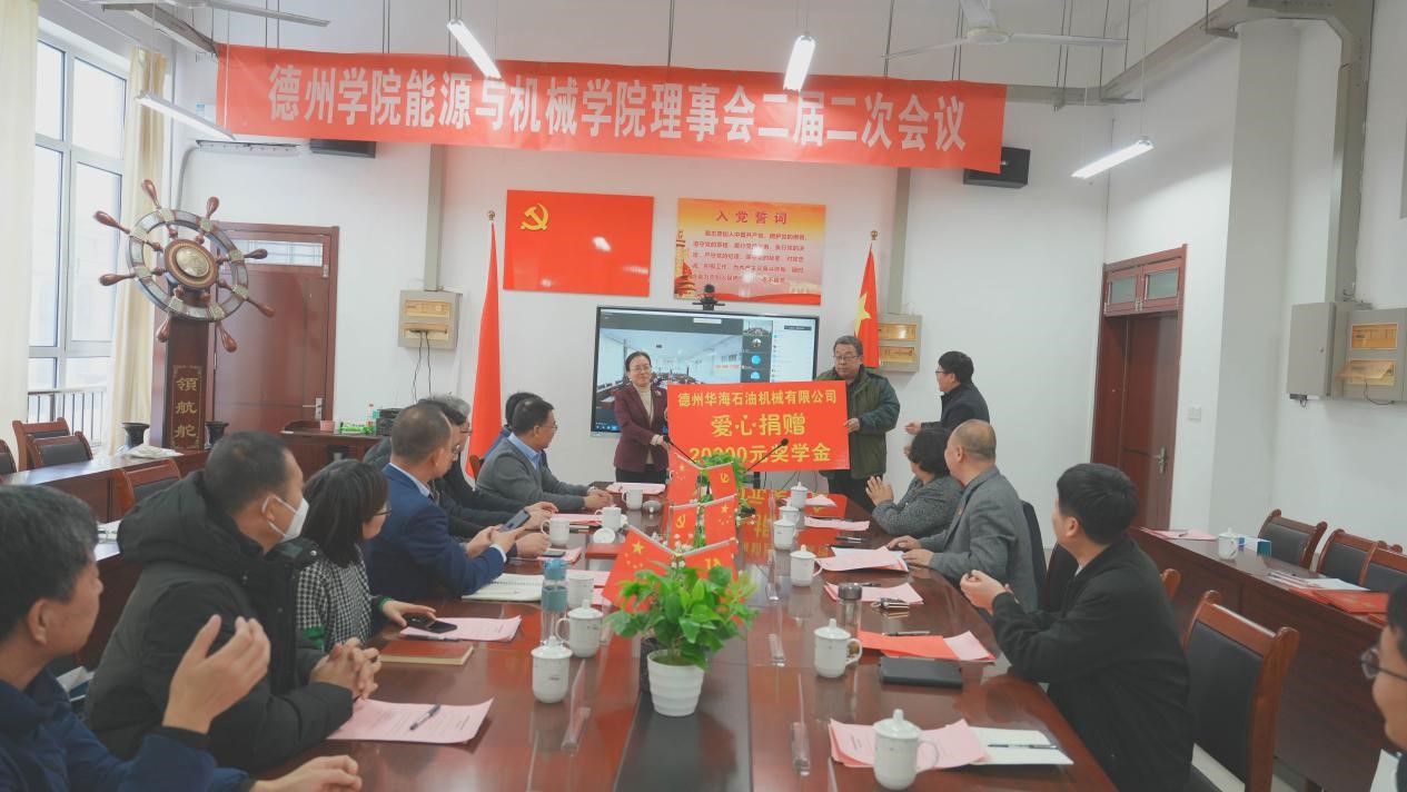会上,还举行了奖学金捐赠仪式,王建民副总经理代表德州华海石油机械股份有限公司向球王会官网捐赠奖学金20000元,徐静副校长代表学校出席捐赠仪式。