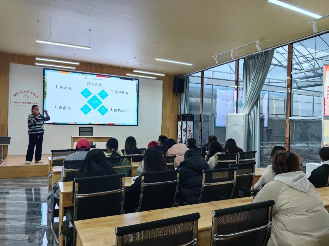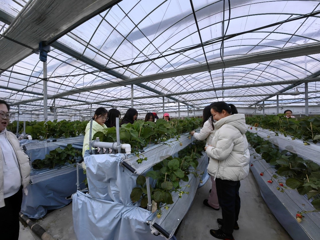 乡村振兴战略专题教育卓越班的理论环节专业面向农业农村现代化发展、乡村振兴战略实施,深度讲解了人工智能等现代信息技术与农业发展的综合改革和深度融合;实践环节中,由乡村振兴研究院副教授李伟老师带领卓越班的20余名同学前往新园农业科技示范园和德州市中医药博物馆进行实地参观。在新园农业科技示范园内,工作人员首先为同学们讲解了农业园区“农业+互联网”“农业+共享经济”等新模式新业态。随后,工作人员带领同学们到新技术培养的草莓种植基地进行草莓采摘活动,科技园的快速发展,让同学们真正领悟到科技在农业现代化中的重要驱动作用。在德州市中医院博物馆内,郭防同志带领大家参观了“历史足迹”、“文明遗珠”等系列展厅,使全体同学深切感受到了中医药文化建设、中医药的挖掘、传承、保护与中医医疗、科研与教学等历史传统文化深厚底蕴与中医药文化的魅力。此次参观经历将德州打造乡村振兴齐鲁样板的“德州实践”传播给了各位同学,使乡村振兴“好声音”持续唱响。