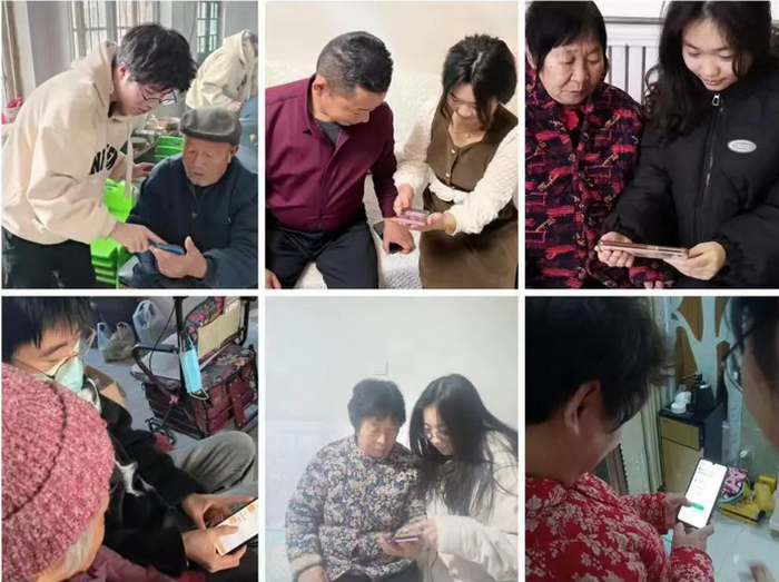 为落实“万名学子链接十万老人,助力银龄跨越数字鸿沟”专项行动,各学院积极组织青年学生利用假期家庭聚会、走亲访友、登门拜访等形式,面向老年人进行智能手机使用方法讲解和反诈宣传。计算机与信息学院组织同学们完成1次结对、开展1次授课、撰写1份调研报告、提交1个科研项目题目,生命科学学院、生态与资源环境学院、美术学院同学们深入社区和农村,走访老人群体,聚焦老年人日常生活涉及的出行、就医、支付、娱健、通信等高频服务场景,用自己的力量助力家乡老人实现“智慧生活”。