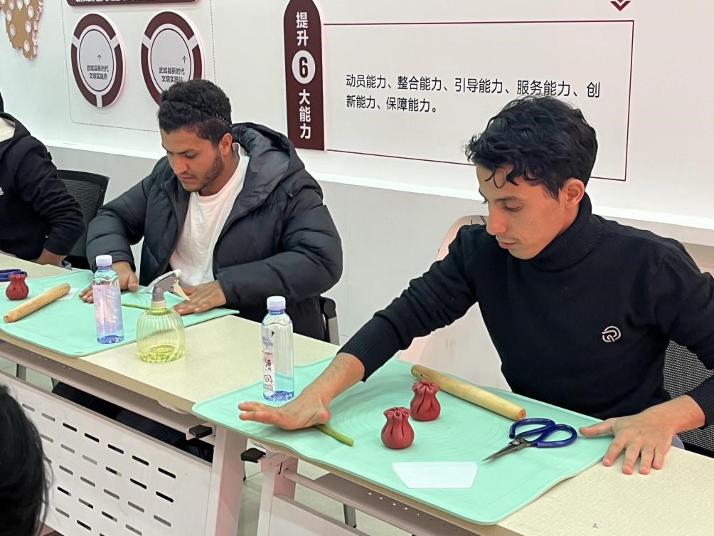 最后一站,留学生们来到了武城县新时代文明实践中心现场制作武城手造花馍。在武城县传统手艺人高艳丽的带领下,留学生们认识了制作花馍的材料和工具,并亲自体验了揉面、造型等过程,感受到花馍的艺术特色,领略了传统文化的魅力。