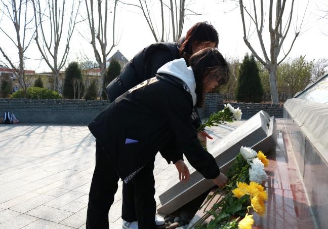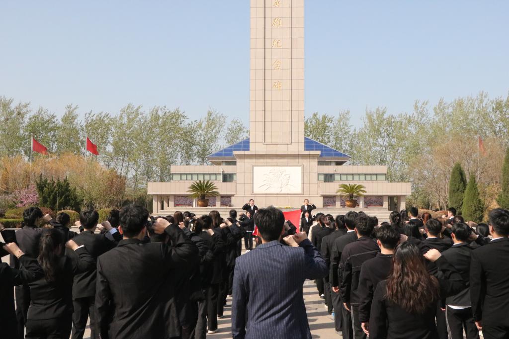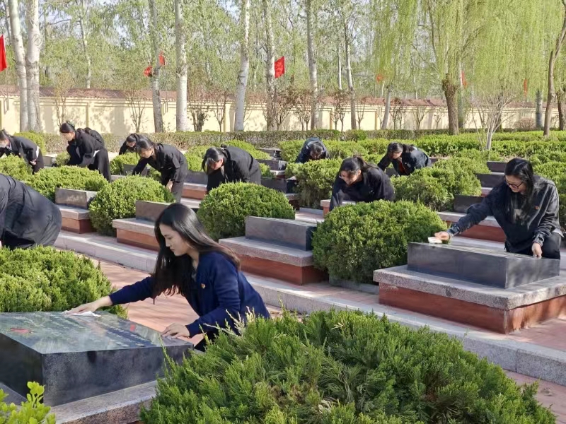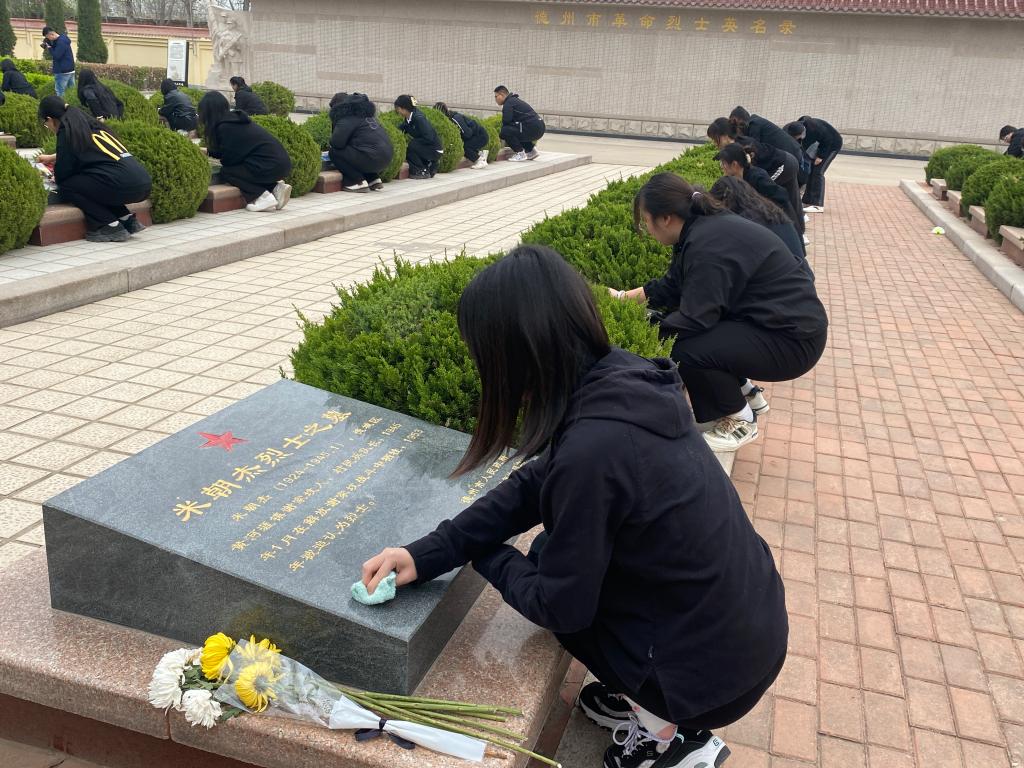 党员代表首先向人民英雄纪念碑敬献花篮。面对着庄严肃穆的革命烈士纪念碑,全体师生向革命烈士默哀致敬,表达对革命烈士的深切哀思之情。师生们面向鲜红的党旗,重温入党誓词,再次感受思想的洗礼和升华,接受红色文化的熏陶。随后,全体师生纷纷为烈士擦拭墓碑,敬献鲜花,用实际行动表达对烈士的崇敬和缅怀之情。最后,参观了德州市革命烈士纪念馆,讲解员生动讲述先烈们的奋斗历程,共同回顾那段波澜壮阔、浴血奋战的革命岁月。