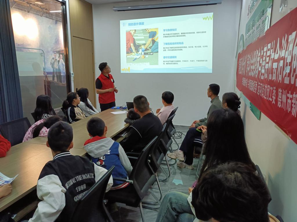 志愿者通过ppt与视频的形式,向青少年详细讲解了网络安全、日常生活、心理健康等安全教育实践与推广,并讲解如何预防及避免安全问题的发生,引导青少年提高安全意识。随后,志愿者对海姆立克急救法和血压计使用方法进行现场操作示范,讲解在遇到突发状况时如何第一时间采取正确、有效的应急措施,用浅显易懂的方式科普每一个细节。青少年学习热情高涨、积极参与练习,纷纷表示培训活动切实提高了自己健康急救意识和水平。