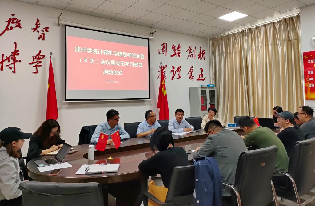 4月16日上午,计算机与信息学院在学院会议室召开党委扩大会议暨党纪学习教育启动部署会,党委负责人主持会议,学院党委委员、组织员、各支部书记及委员参加会议。