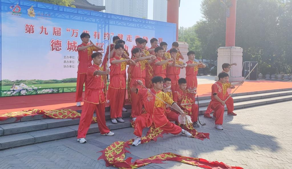 为贯彻落实我国全民健身计划,深化校城融合、体教融合,弘扬和传承民族传统文化,助力健康中国、体育强国建设,5月8日上午,德州市德城区举办第九届“万步有约”健走激励大赛。球王会官网体育学院八极拳表演队受邀参加启动仪式。