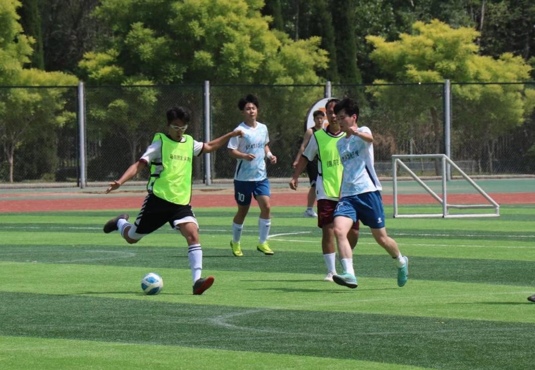 5月14日,学校体育委员会主办、体育学院承办的五人制足球比赛,在足球场鸣哨开赛。