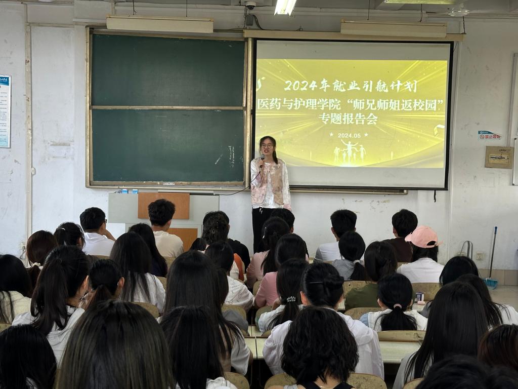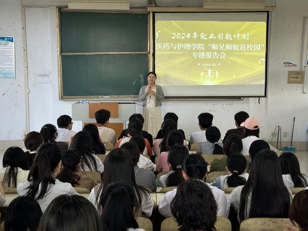 为强化就业育人实效,引导学生树立理性、平实的择业观、就业观。医药与护理学院于5月23日在体育楼315教室举办了“师兄师姐返校园”专题报告会。报告邀请德州市妇幼保健院的齐万学和德州市第二人民医院的郭庆佳为在校生分享就业经历,提供个性化指导。