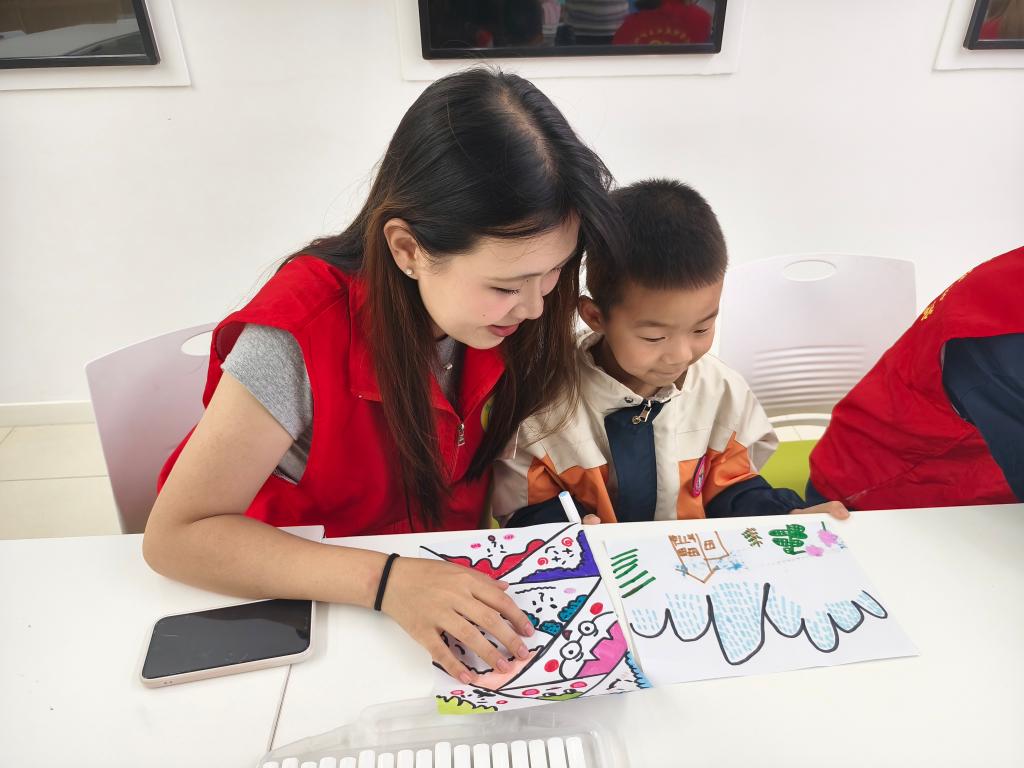本次活动志愿者为青少年准备了“与心灵相约,与健康同行”心理健康宣讲、“表情大拼盘”创意绘画、“我的梦想我做主”理想分享三个项目。首先,志愿者重点围绕“我的情绪压力怎样”“情绪压力对我们的影响”以及“如何缓解释放压力”等关键内容开展宣讲,让青少年了解情绪压力对学习生活带来的影响,并掌握一系列缓解释放压力的有效方法,让孩子们在面对压力时能够更好地应对和调整自己。随后,志愿者通过绘画的方式传递和调节情绪,进一步帮助青少年缓减压力,提升专注力,让青少年用积极的想法和创意作品去释放积压的情绪,感受生命的多彩,热爱生命中的美好。最后,志愿者引导青少年通过听歌识曲猜片名的游戏,说出心目中最喜欢的动画角色以及想要成为什么样的人,并告诉他们梦想的起点就是现在,好好学习、努力奋斗就会离心中的梦想越来越近。