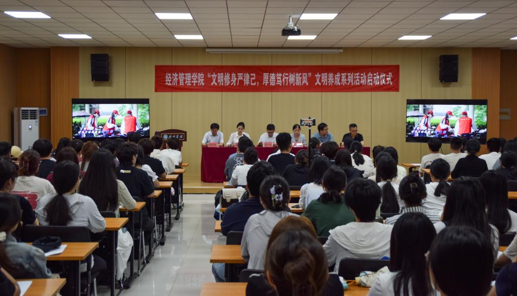 经济管理学院党委负责人就文明行为养成向同学们提出三点要求。一是深刻理解此次活动的重要意义,设置短期目标和长期目标,进而培养良好的文明行为习惯。二是在着装礼仪、前排就坐、尊敬师长、维护课堂秩序、遵守课堂纪律等方面做好表率,展现经管学子积极向上的精神风貌。三是文明习惯的养成并非一朝一夕,同学们要持之以恒,常抓不懈,使文明素养内化为外在的优良品行。