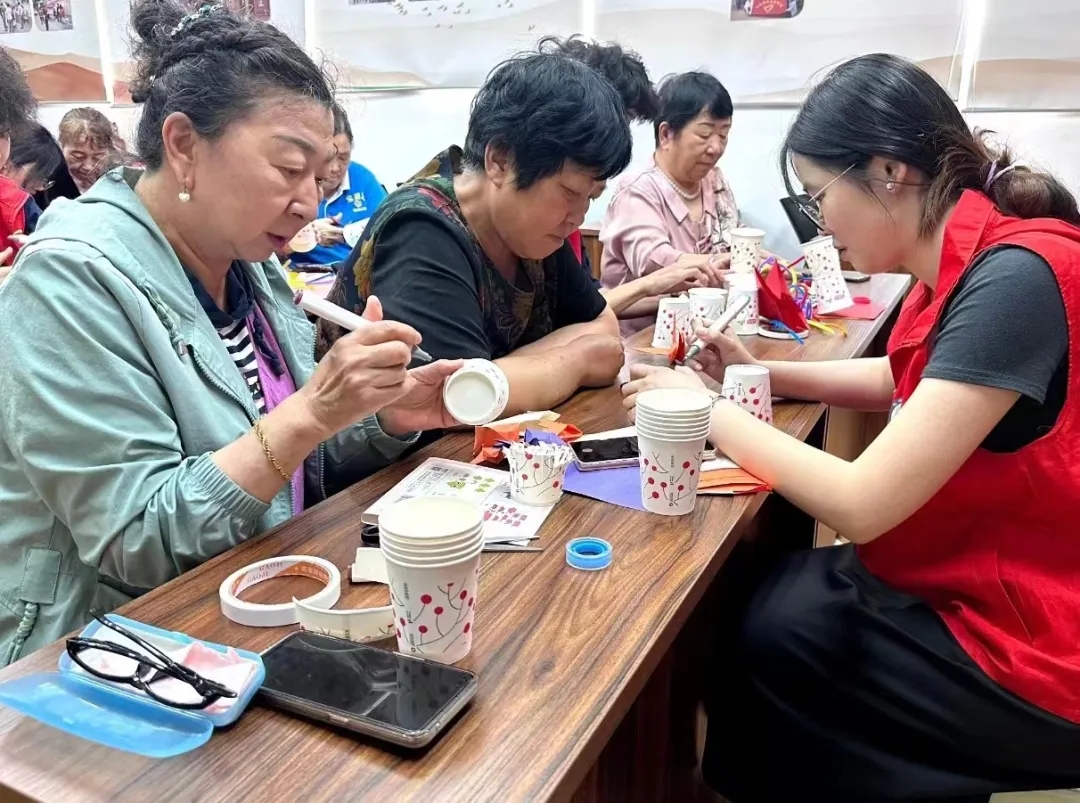 在本次活动中同学们和社区居民共同使用废旧纸杯,创造出一个个独特的环保手工艺品。同学们首先向居民们介绍了纸杯手工的基本技巧和环保意义,利用简单的工具和材料,将废弃的纸杯变成了美丽的花朵、精致的小饰品等。在活动的最后,同学们向社区居民们普及了防止手机诈骗的相关知识。